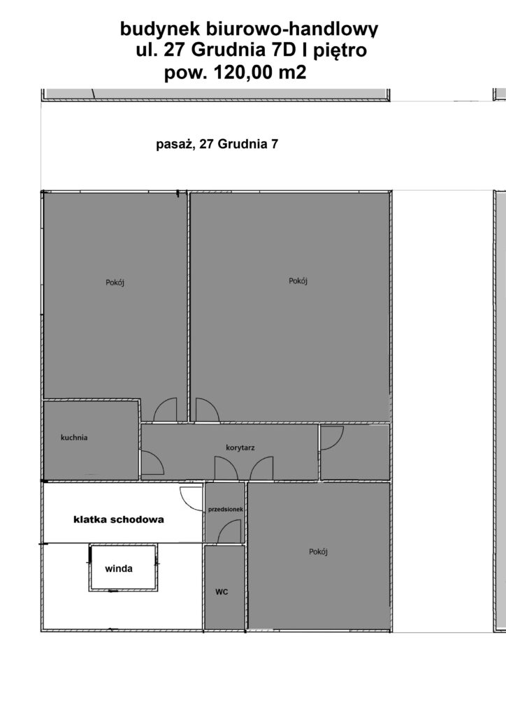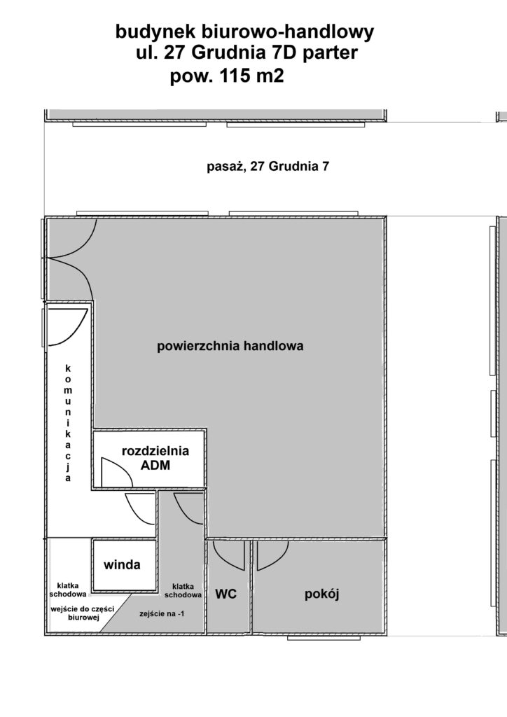 Centrum miasta Biurowiec Muchowiecka, pasaż 540 m2, w tym 360,00 m2 biur, 115,00 m2 powierzchni handlowo usługowej + 65 m2 zaplecza i magazynu. Pasaż ul. 27 Grudnia 7 D w Poznaniu.