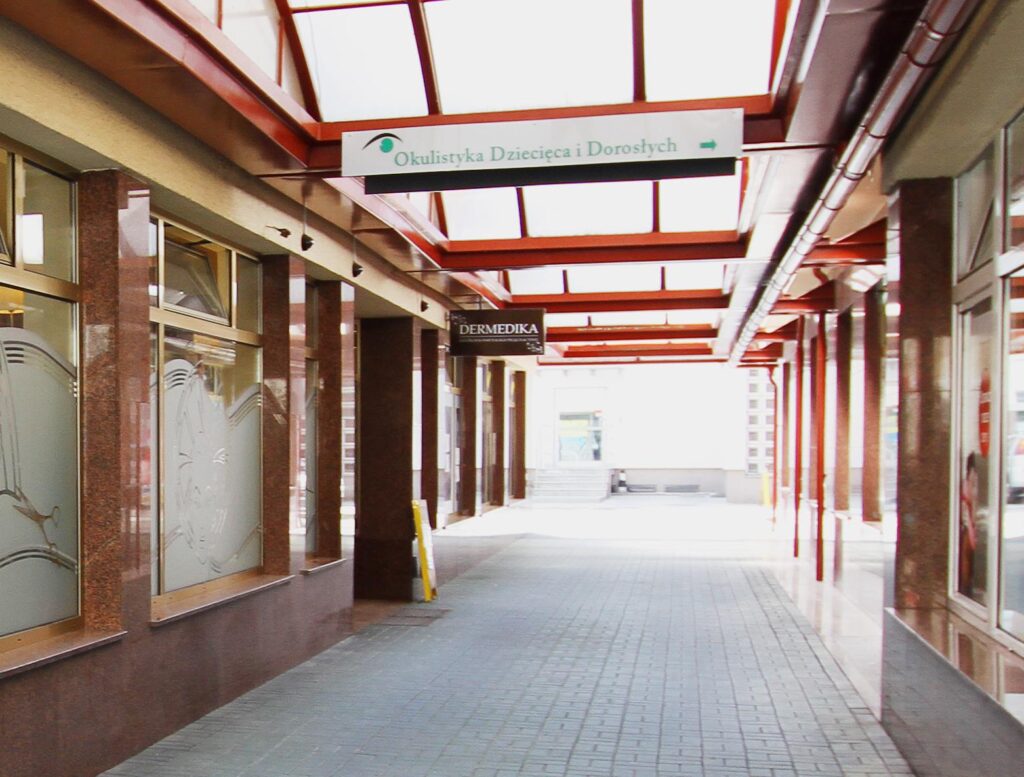 – od strony pasażu nowa stolarka aluminiowa w kolorze złotym;